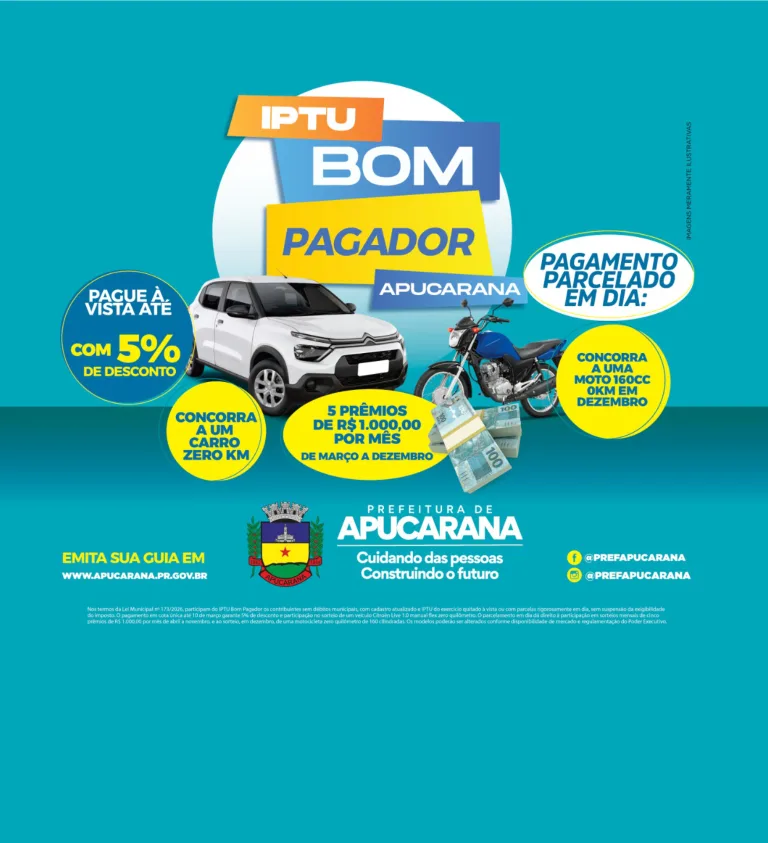 APUCARANA: Prefeitura prorroga prazo de pagamento do IPTU Bom Pagador após atraso na entrega pelos Correios 4 de março de 2026