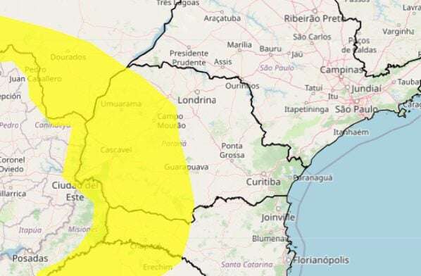 Conforme o aviso, as precipitações podem variar entre 20 e 30 milímetros por hora, com um acumulado de até 50 mm ao longo do dia. Embora o risco seja classificado como baixo, há possibilidade de transtornos como cortes no fornecimento de energia elétrica, estragos em plantações, queda de galhos de árvores e formação de pontos de alagamento.