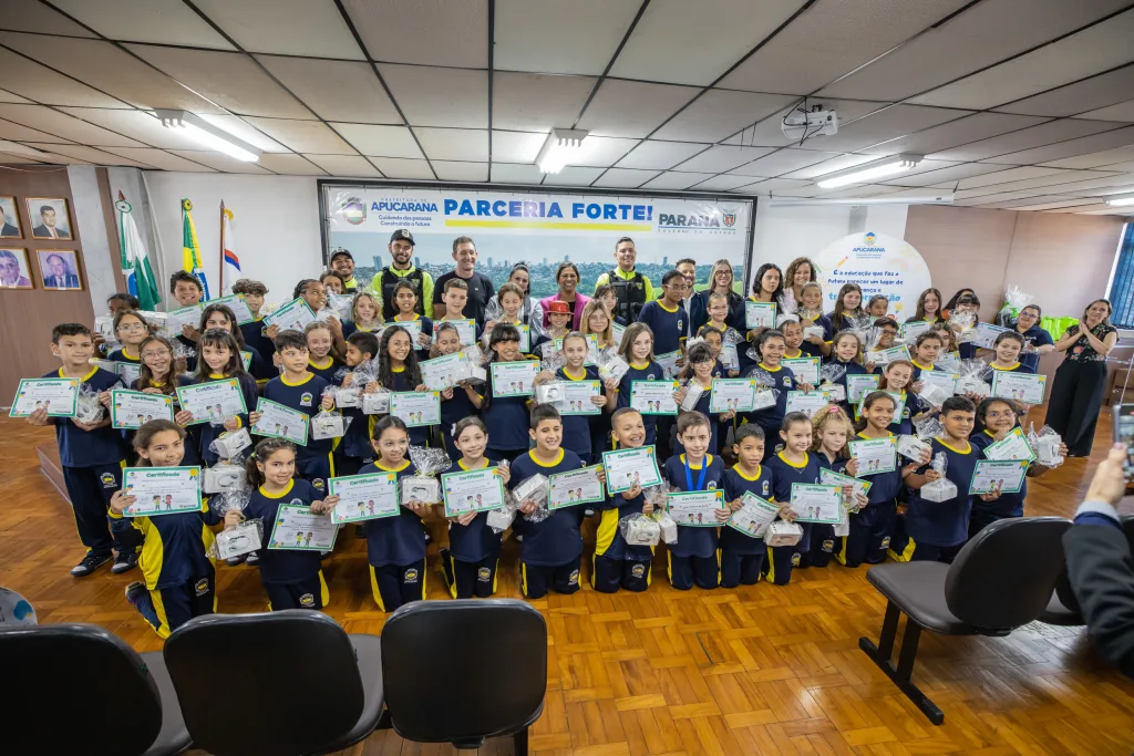 Também receberam premiação os participantes dos projetos MPT na Escola, do Ministério Público do Trabalho, e Museu-Escola, da Secretaria Municipal de Cultura e Turismo, ambos direcionados às turmas de 4º Ano. No MPT na Escola, os estudantes produziram poesias sobre o tema “A Escola no Combate ao Trabalho Infantil”. Já o Museu-Escola levou as crianças ao Museu do Café, no distrito de Pirapó, para aprender sobre a história cafeeira do município e produzir redações sobre o tema. As melhores produções foram reconhecidas nesta quarta-feira.
