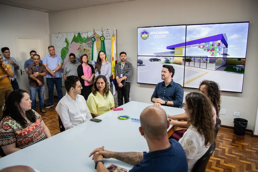 O prefeito Rodolfo Mota apresentou nesta quarta-feira (15/10), em evento no gabinete municipal, o projeto da Casa do Autista de Apucarana. A unidade pública de atendimento especializado a crianças e adolescentes com o Transtorno do Espectro Autista (TEA) e outras condições neurológicas, será construída em terreno central localizado na Rua Miguel Simião, ao lado do Pronto Atendimento Infantil (PAI), e terá dois pavimentos, com estacionamento aberto e também no subsolo, totalizando 950,15 metros quadrados de área construída.