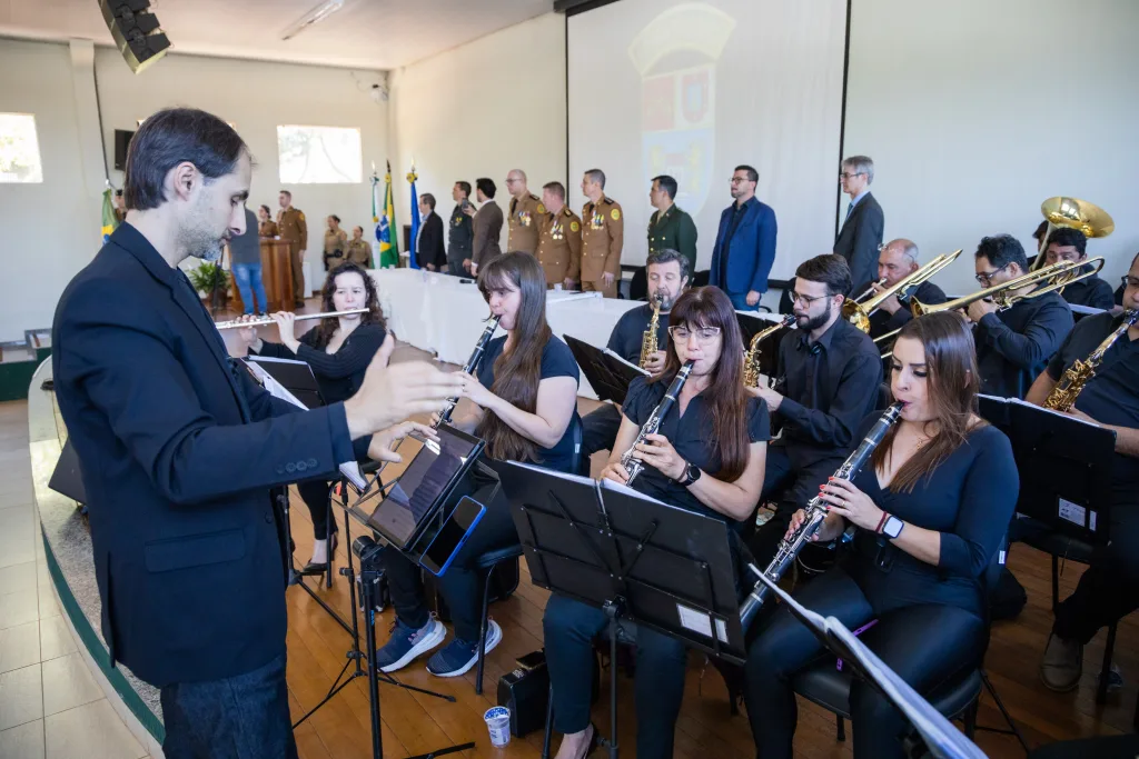 O comandante do 10º Batalhão, tenente-coronel Robson Falk Vieira, lembrou a trajetória da unidade, construída com “coragem, lealdade e amor ao Paraná”. Ele ressaltou que essa história reflete o esforço coletivo de homens e mulheres que, com disciplina e sacrifício, mantêm viva a missão de servir e proteger. O comandante também agradeceu às instituições parceiras, como o Ministério Público, Poder Judiciário, Bombeiros, Exército, as demais forças policiais e as prefeituras, destacando que a segurança pública se faz com união e propósito comum.