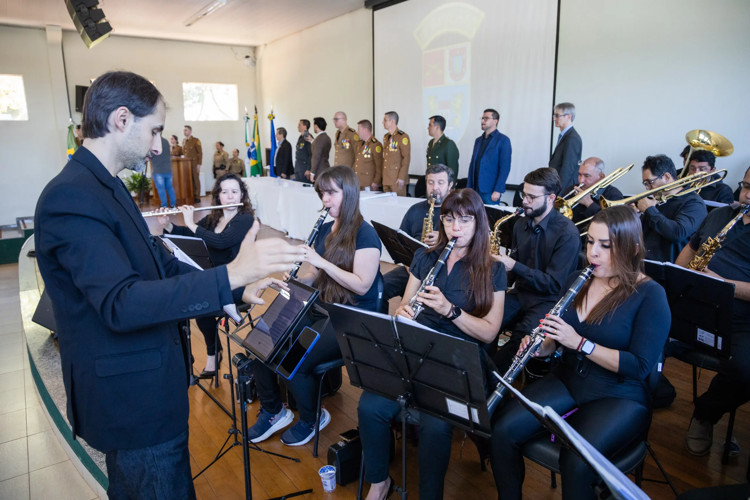 O comandante do 10º Batalhão, tenente-coronel Robson Falk Vieira, lembrou a trajetória da unidade, construída com “coragem, lealdade e amor ao Paraná”. Ele ressaltou que essa história reflete o esforço coletivo de homens e mulheres que, com disciplina e sacrifício, mantêm viva a missão de servir e proteger. O comandante também agradeceu às instituições parceiras, como o Ministério Público, Poder Judiciário, Bombeiros, Exército, as demais forças policiais e as prefeituras, destacando que a segurança pública se faz com união e propósito comum.