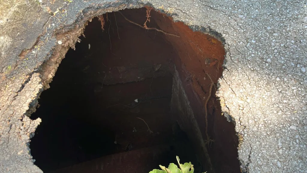De acordo com o secretário municipal de Obras, engenheiro Mateus Franciscon Fernandes, a causa do incidente foi um processo de erosão subterrânea. “Nós temos a passagem de um córrego naquela localidade. O tubo no qual a água do rio passa é muito antigo e fabricado em material metálico. Ele acabou corroendo no fundo e a água começou a correr pela terra. Consequentemente, isso acaba criando uma erosão subterrânea. Por ser no subsolo, o problema não é constatado até a abertura do buraco no asfalto”, explicou.