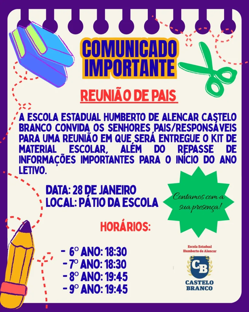 BORRZÓPOLIS: Escola Castelo Branco realiza reunião de pais com entrega de material escolar 27 de janeiro de 2026