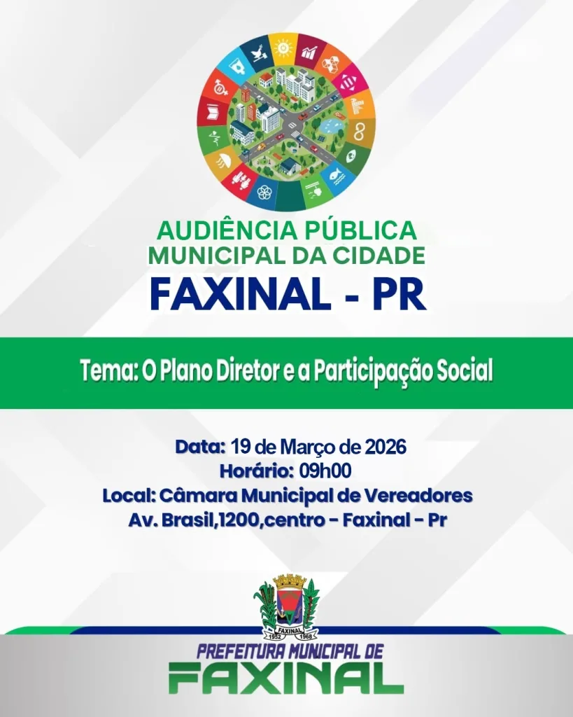 FAXINAL: Prefeitura convoca população para audiência pública sobre atualização do Plano Diretor 5 de março de 2026