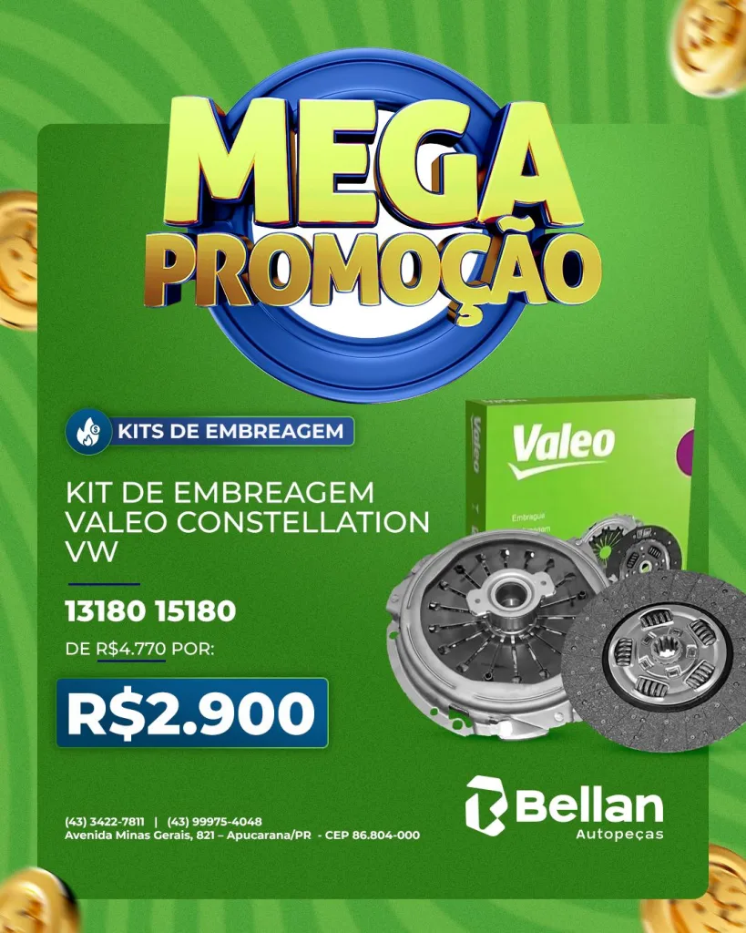 Motoristas e transportadores de Apucarana e região têm uma ótima oportunidade para economizar na manutenção do caminhão. A Bellan Autopeças anunciou uma mega promoção em kits de embreagem de marcas reconhecidas no mercado, com descontos que chegam a mais de R$ 1.800.