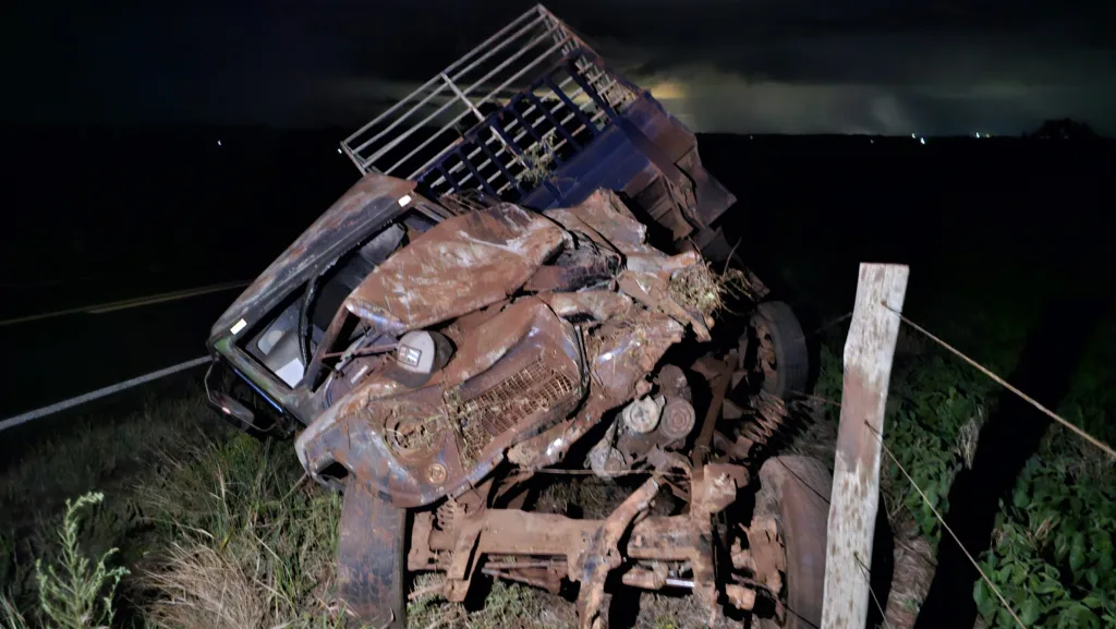 Uma Ford Willys F75 Pick-up de Borrazópolis ficou destruída após um acidente registrado na noite de sexta-feira (9 de janeiro de 2026), na rodovia Domingos Massa PR-466. O capotamento ocorreu a cerca de cinco quilômetros do perímetro urbano, no trecho que liga o município a Kaloré, na região conhecida como Descida do Fitz, nas proximidades do Aterro Sanitário.