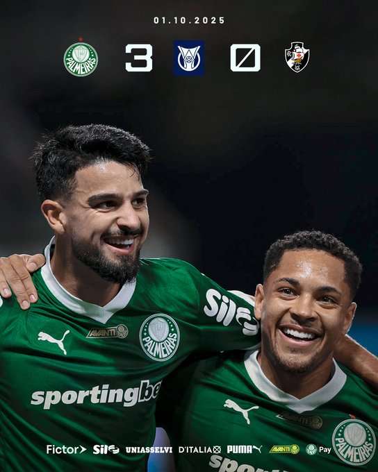 O Palmeiras contou com o faro de gol apurado da dupla formada por Flaco López e por Vitor Roque para derrotar o Vasco por 3 a 0, na noite desta quarta-feira (1) no Allianz Parque, para assumir a vice-liderança do Campeonato Brasileiro.