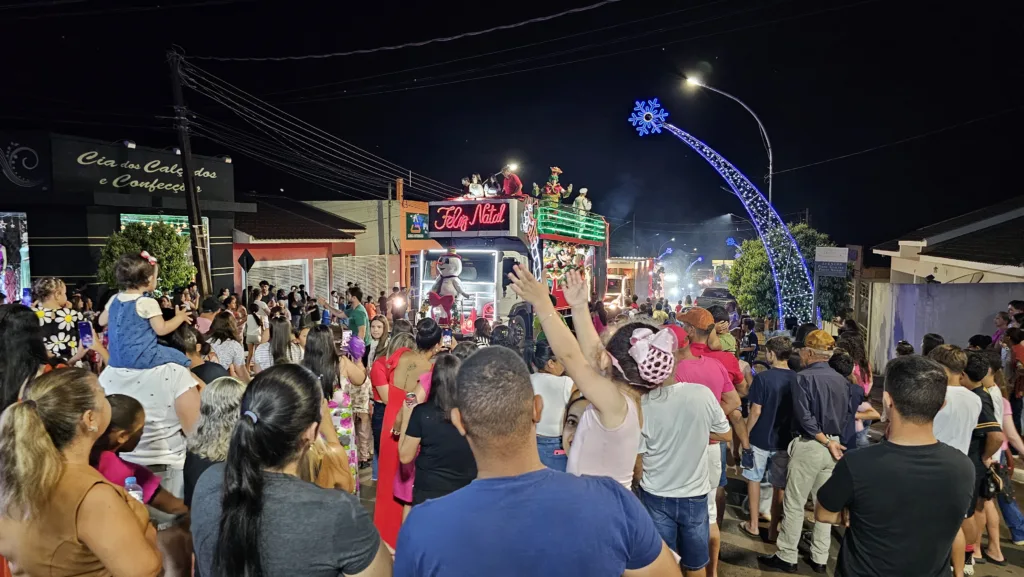 A noite de quinta-feira (11) foi marcada pela chegada da Caravana do Papai Noel em Cruzmaltina. O evento, inédito no município, transformou a cidade e atraiu centenas de moradores à praça central. Para a realização do espetáculo, a Prefeitura contratou uma empresa especializada de Campo Mourão.