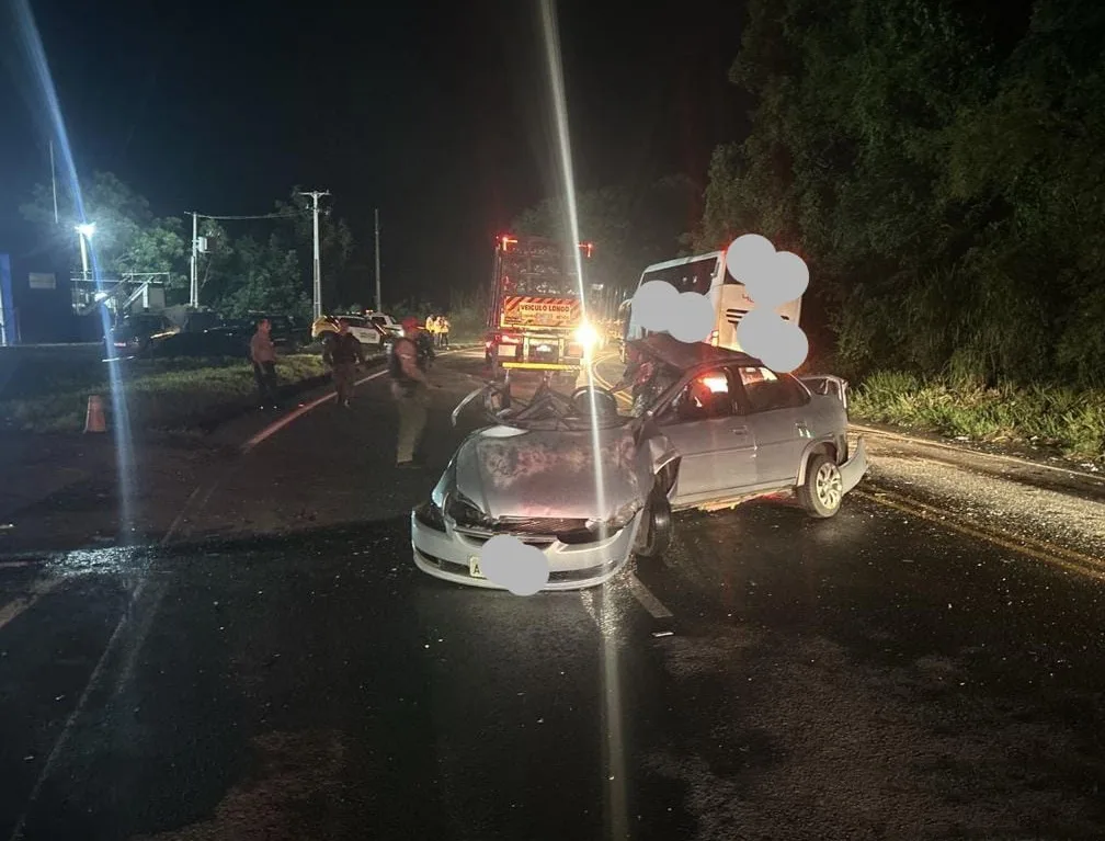 Um grave acidente de trânsito foi registrado na noite deste domingo (7) na rodovia PR-160, na altura do km 213, em Telêmaco Borba. A colisão envolveu um Chevrolet Classic, com placas de Colombo, e um ônibus Mercedes-Benz, com placas de Ibaiti.