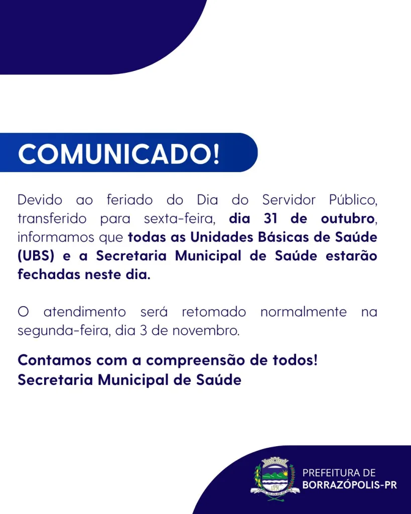 Feriado do Servidor: Saiba o que abre e fecha em Apucarana nesta sexta-feira (31) 29 de outubro de 2025