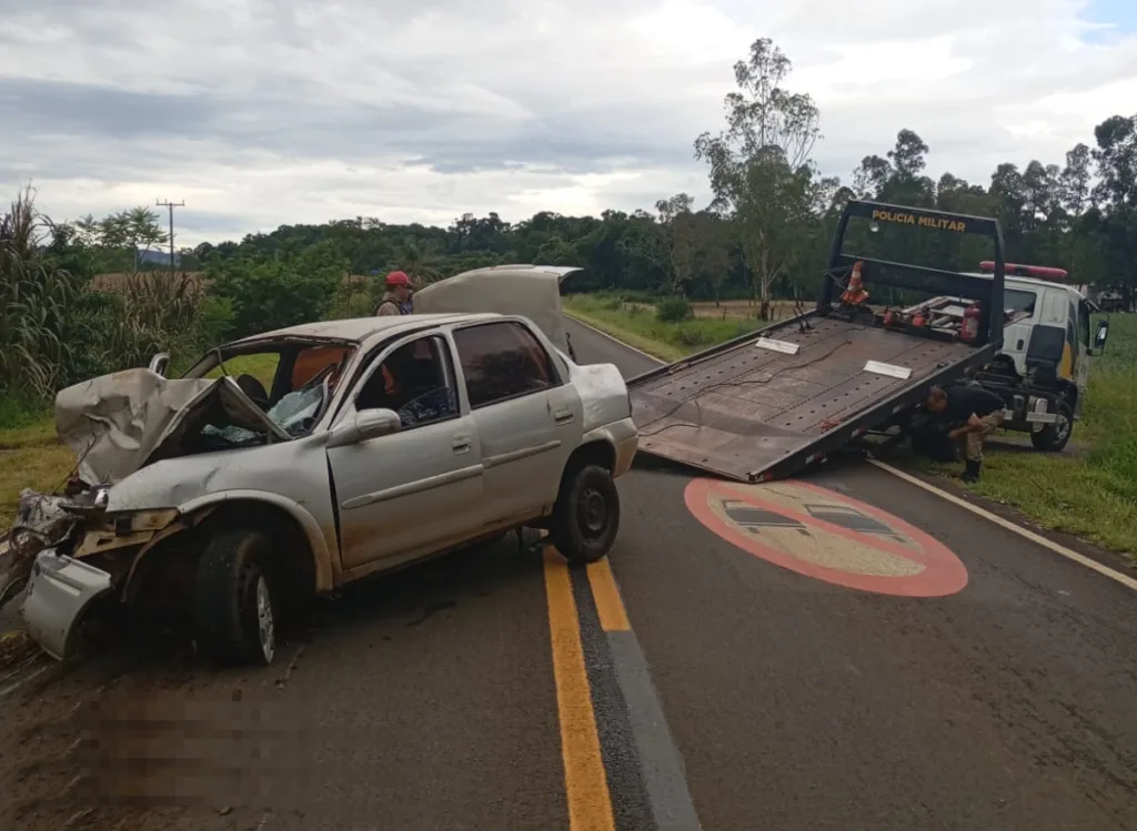 O automóvel sofreu danos significativos e, após checagem, foi recolhido ao pátio da Polícia Rodoviária Estadual devido a débitos pendentes.