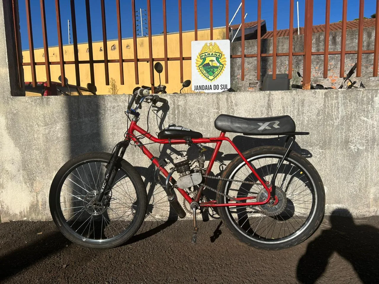Durante patrulhamento, a equipe policial avistou o veículo, uma Caloi de cor vermelha, e realizou a abordagem utilizando sinais sonoros e luminosos. Ficou constatado que o condutor era um adolescente.