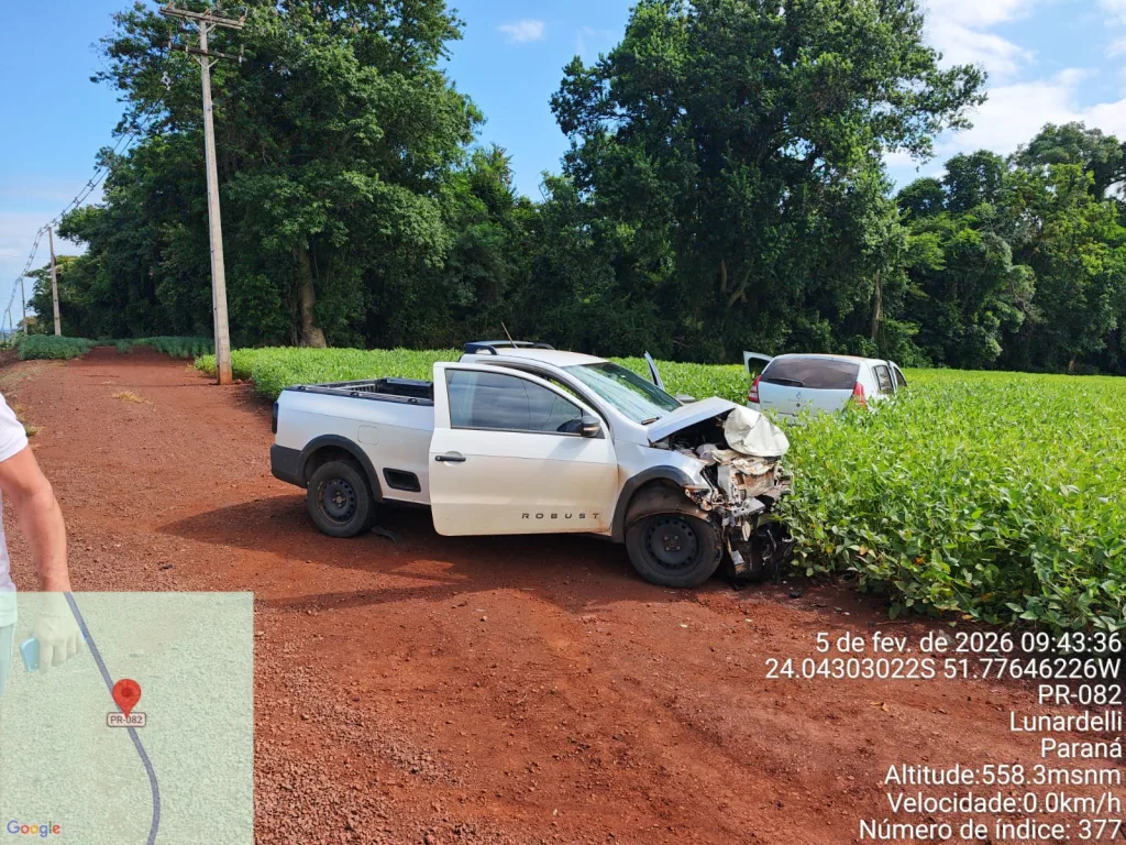 Um acidente de trânsito mobilizou equipes de socorro na manhã desta quinta-feira (5) na rodovia PR-082, em Lunardelli. A colisão ocorreu por volta das 08h20, na altura do Km 355, envolvendo dois veículos e resultando em ferimentos nos dois condutores.