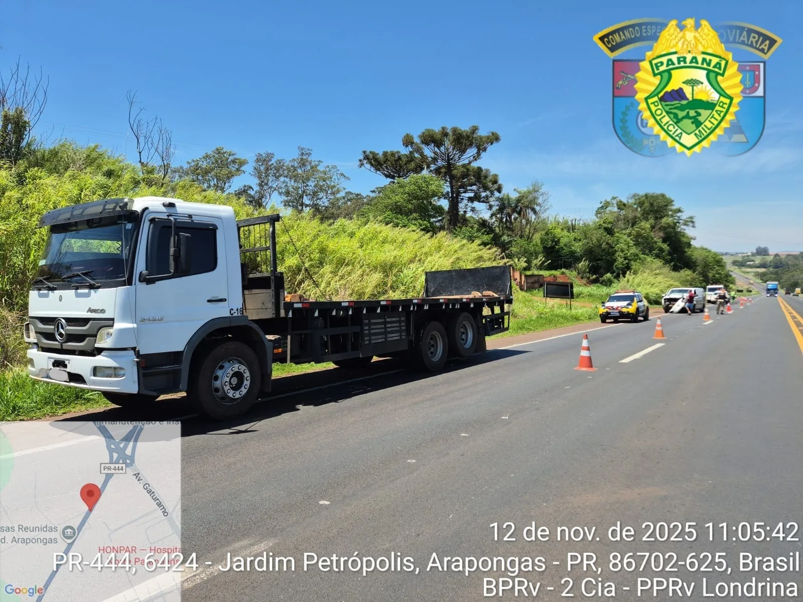 O furgão, que estava com um recall pendente, foi removido ao pátio da PRv de Rolândia para regularização. O caminhão foi liberado no local.