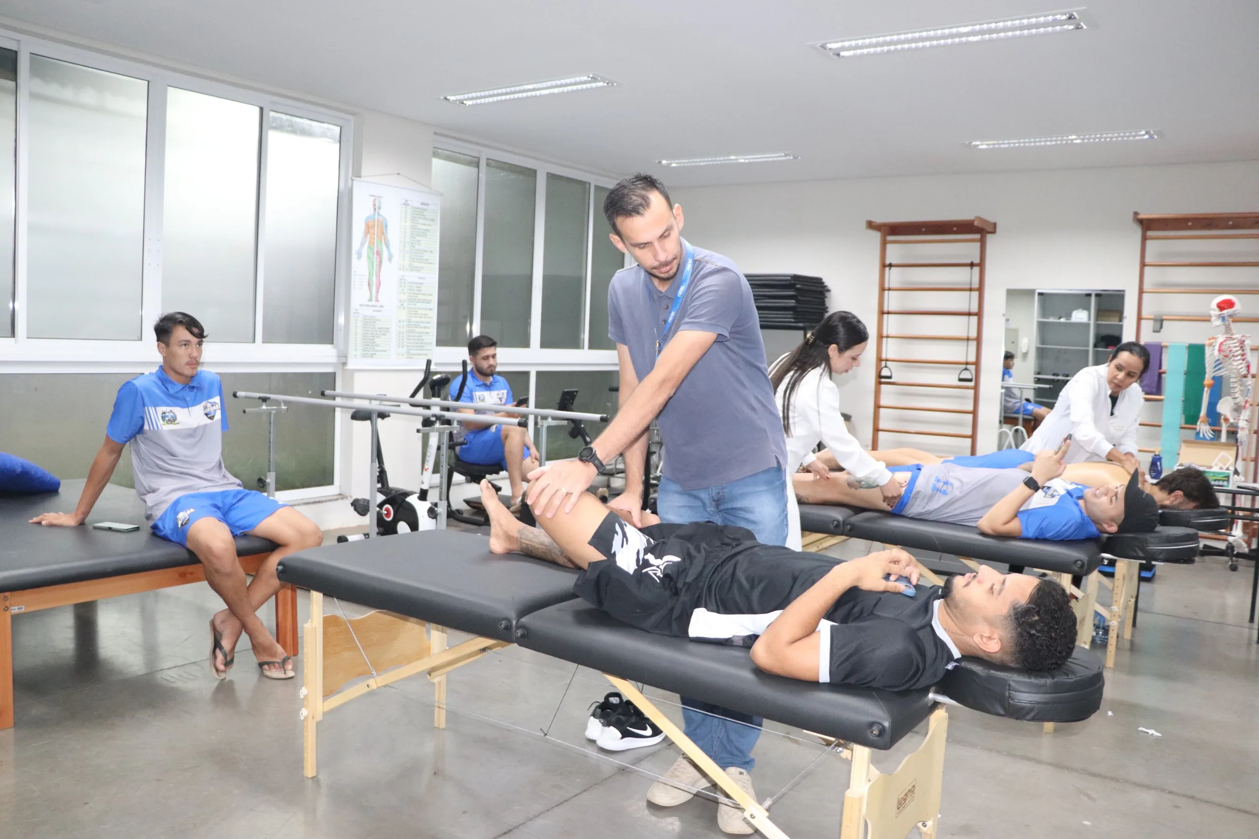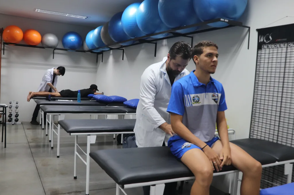 “No dia a dia, as queixas seguem um padrão. As dores são frequentes, principalmente na região lombar, inguinal, joelhos e tornozelos – áreas mais exigidas no Futsal e sujeitas a sobrecarga constante”, informou o coordenador. Durante os atendimentos, os acadêmicos atuam com diferentes abordagens, como liberação miofascial, exercícios cinesioterapêuticos, recursos de eletrotermofototerapia, além de ajustes posturais e biomecânicos. “As intervenções são conduzidas sob supervisão e voltadas tanto à recuperação quanto à prevenção”, lembrou José Brito.