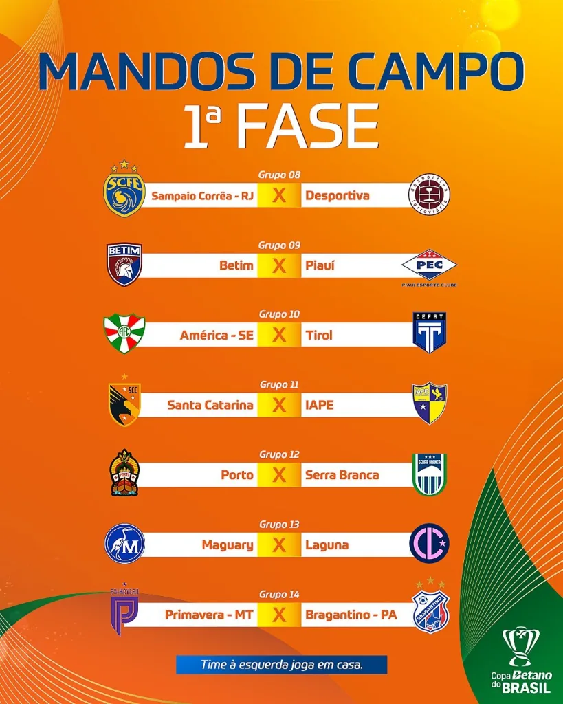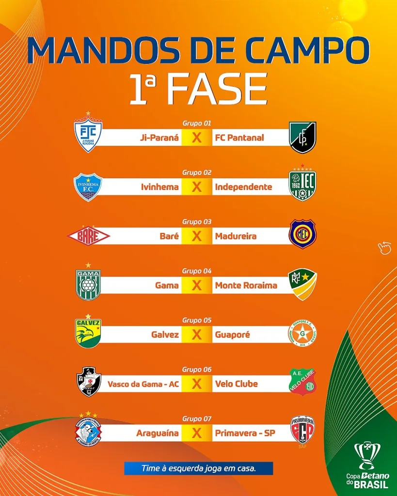 Confira a lista de jogos, com os times mandantes de campo sempre à esquerda.