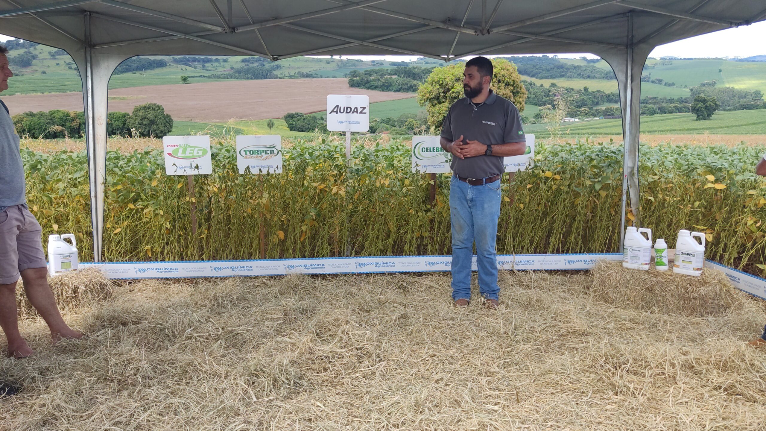 O Agricultor Ochiton cedeu espaço de sua propriedade para analisar diferentes cultivares de soja, além do uso de novos produtos de crescimento e defensivos.