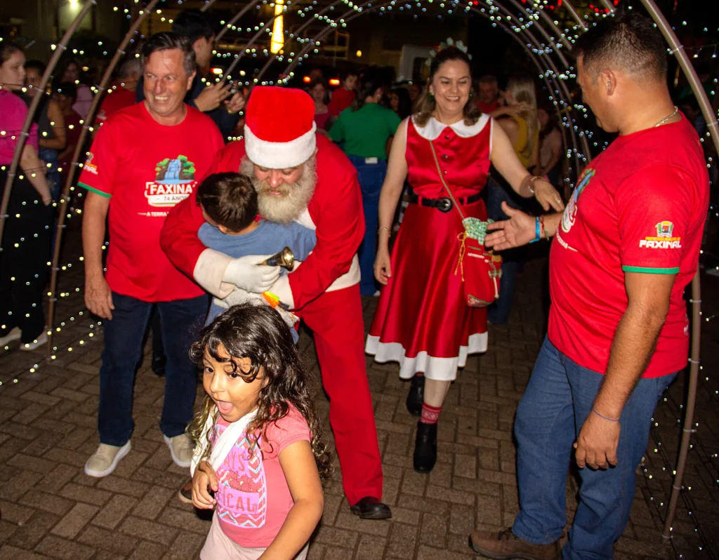 Faxinal recebeu a chegada do Papai Noel na noite de terça-feira (16), em um evento que atraiu centenas de moradores à Praça Dealcides Bahls. O bom velhinho chegou em carreata às 19h30, acompanhado por motociclistas e veículos, e foi recebido com aplausos por crianças e adultos. A Mamãe Noel também participou da abertura oficial da programação natalina.