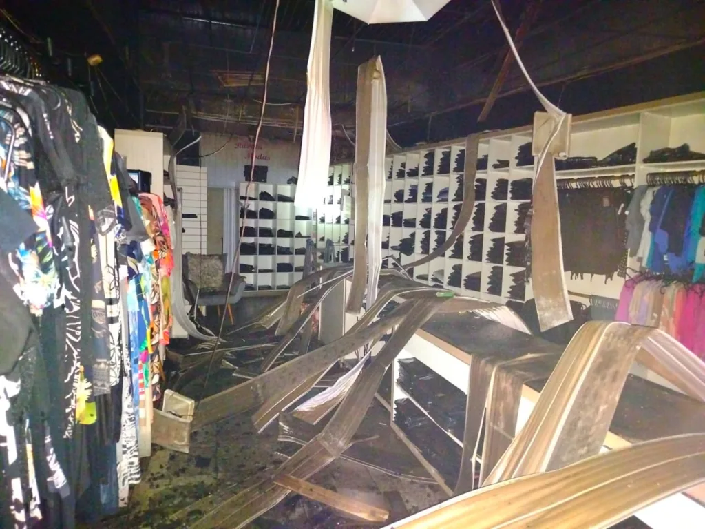 Durante a ação, a cobertura da lanchonete cedeu devido à propagação das chamas pelo teto, exigindo cuidado redobrado das equipes. Apesar da gravidade e dos danos materiais, não houve registro de vítimas.