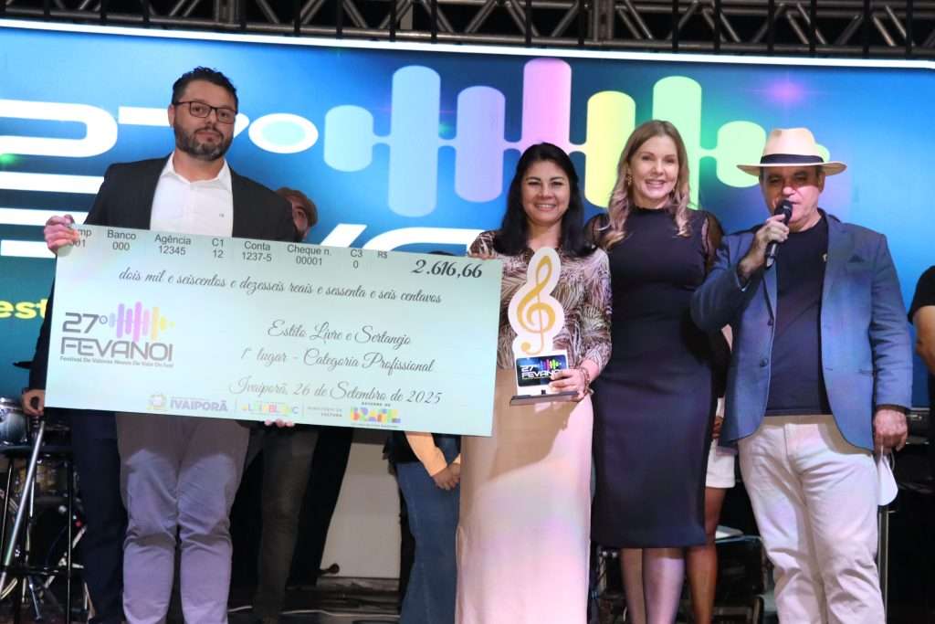 A sexta-feira, 26 de setembro, foi de música, emoção e reconhecimento no Centro Cultural Olivia Hauptmann, em Ivaiporã.  A Prefeitura realizou o 27º Fevanoi – Festival de Valores Novos do Vale do Ivaí, reunindo artistas em uma celebração à música brasileira.