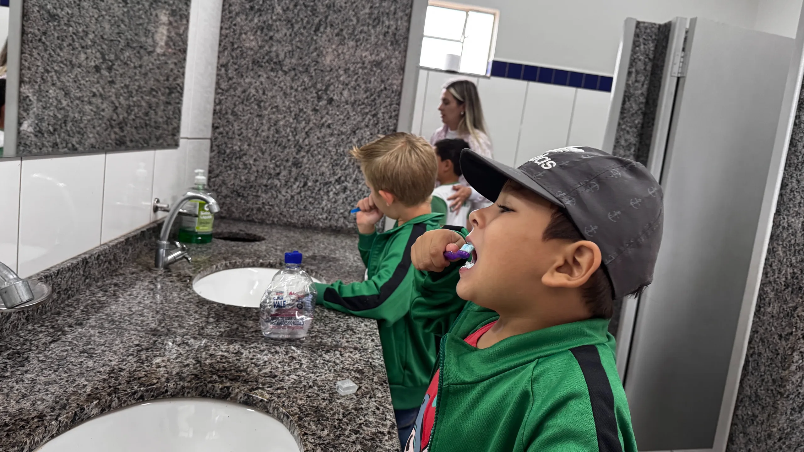 Durante a atividade, as crianças receberam orientações práticas sobre a forma correta de escovar os dentes, a importância da higiene bucal diária e os cuidados necessários para evitar cáries e outros problemas odontológicos. Como parte da ação, foram distribuídas escovas de dente e realizado bochecho com flúor, reforçando a prevenção e a proteção da saúde bucal.