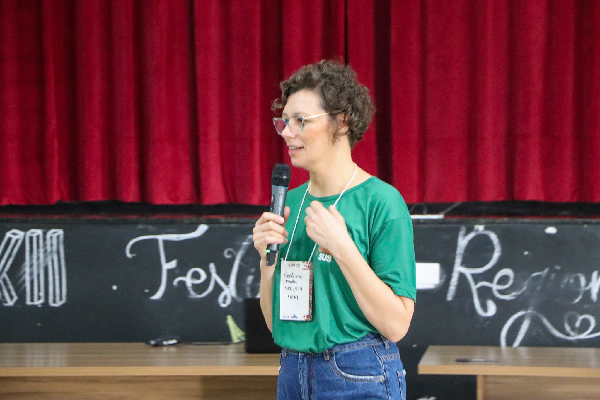 Cristiane Muller Calazans explicou como a política nacional de humanização pode contribuir para melhorar tanto as condições de vida do trabalhador da área da saúde, quanto o atendimento e acolhimento dos usuários dos serviços públicos.