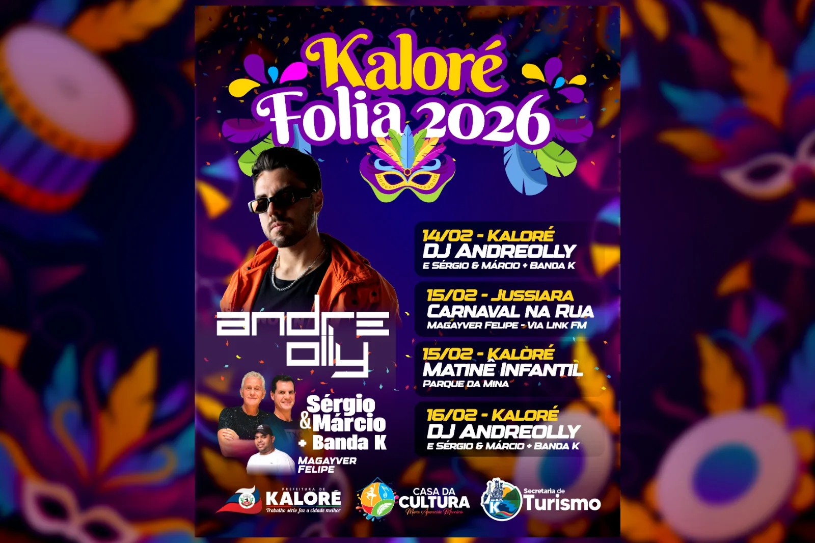 A Prefeitura de Kaloré, através da Secretaria Municipal de Cultura e Turismo, confirmou a realização do Kaloré Folia 2026. O evento acontece entre sábado (14) e segunda-feira (16), integrando o calendário oficial de festividades da região com atrações voltadas para diversos públicos.