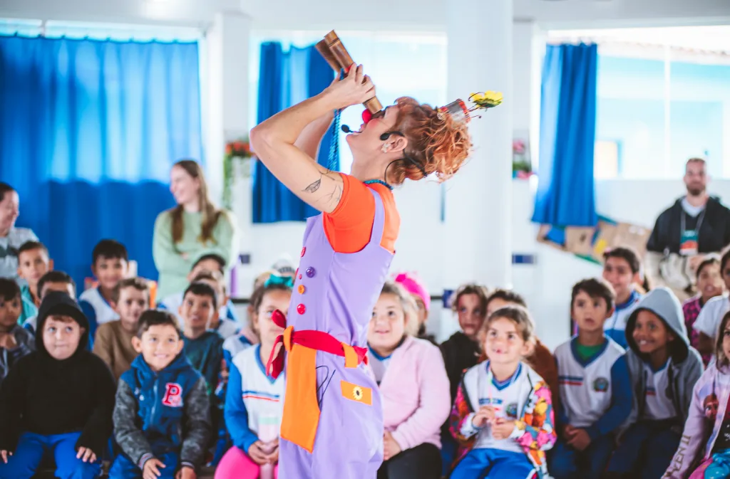 A programação começa na quinta-feira (23), às 15h30, na Escola Municipal Ângelo Muller Filho (Av. dos Missionários, 525 – centro) com a contaçãode histórias para estudantes. Em “Histórias sem pé nem cabeça, mas com coração”, a palhaça Adelaide (Juliana Galante) vai divertir a criançada com três histórias que falam sobre a importância da liberdade, do respeito às diferenças, do amor-próprio e da empatia.