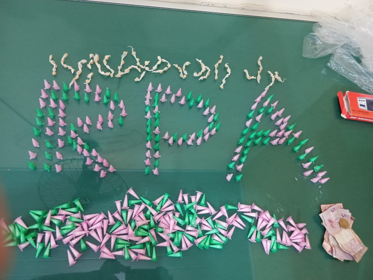 Diante da informação, a equipe realizou diligências nas proximidades, avistando o suspeito entrando no ginásio de esportes. Ao abordar o indivíduo, um adolescente de 16 anos, este deixou cair uma trouxinha contendo várias pedras de crack. Na busca pessoal, foram encontradas mais pedras de crack embaladas em invólucros de plástico dentro de sua carteira, totalizando 103 pedras fracionadas, pesando 24 gramas, além de 1,9 grama de maconha e a quantia de R$ 40,75 em dinheiro.