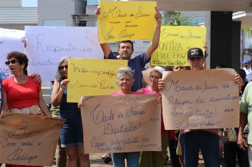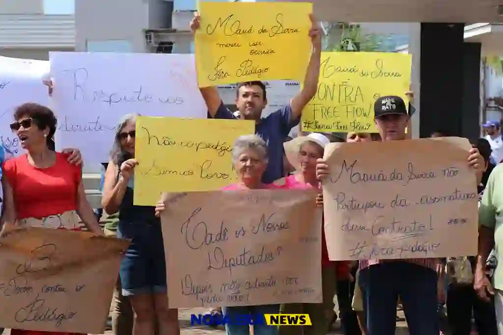 Lideranças e moradores de Mauá da Serra realizaram uma manifestação nesta quarta-feira (18) contra a instalação de uma praça de pedágio na BR-376. O ato, inicialmente planejado para as margens da rodovia, foi transferido para a praça central após a concessionária CCR PRVias acionar a Justiça Federal. A empresa alegou risco de depredação e bloqueio da pista, obtendo uma liminar que previa multa horária de R$ 5 mil ao prefeito Givanildo Lopes (União).