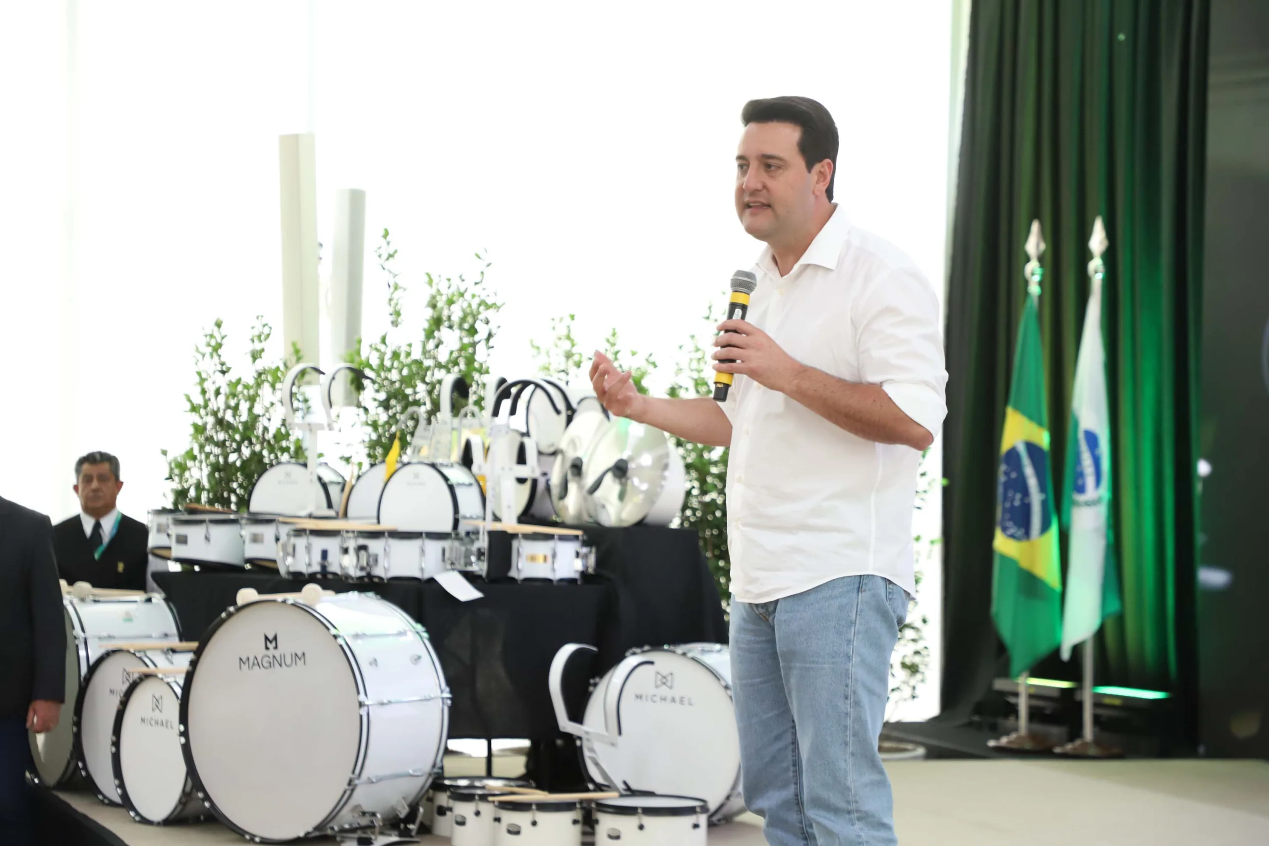 O governador Carlos Massa Ratinho Junior entregou nesta segunda-feira (1º) kits de instrumentos musicais para 90 municípios paranaenses, incluindo Bom Sucesso, Borrazópolis, Cambira, Faxinal, Ivaiporã, Jardim Alegre, Lunardelli, Rio Branco do Ivaí e São João do Ivaí, e anunciou um pacote de R$ 100 milhões em novos investimentos para fortalecer a área da Cultura no Estado.
