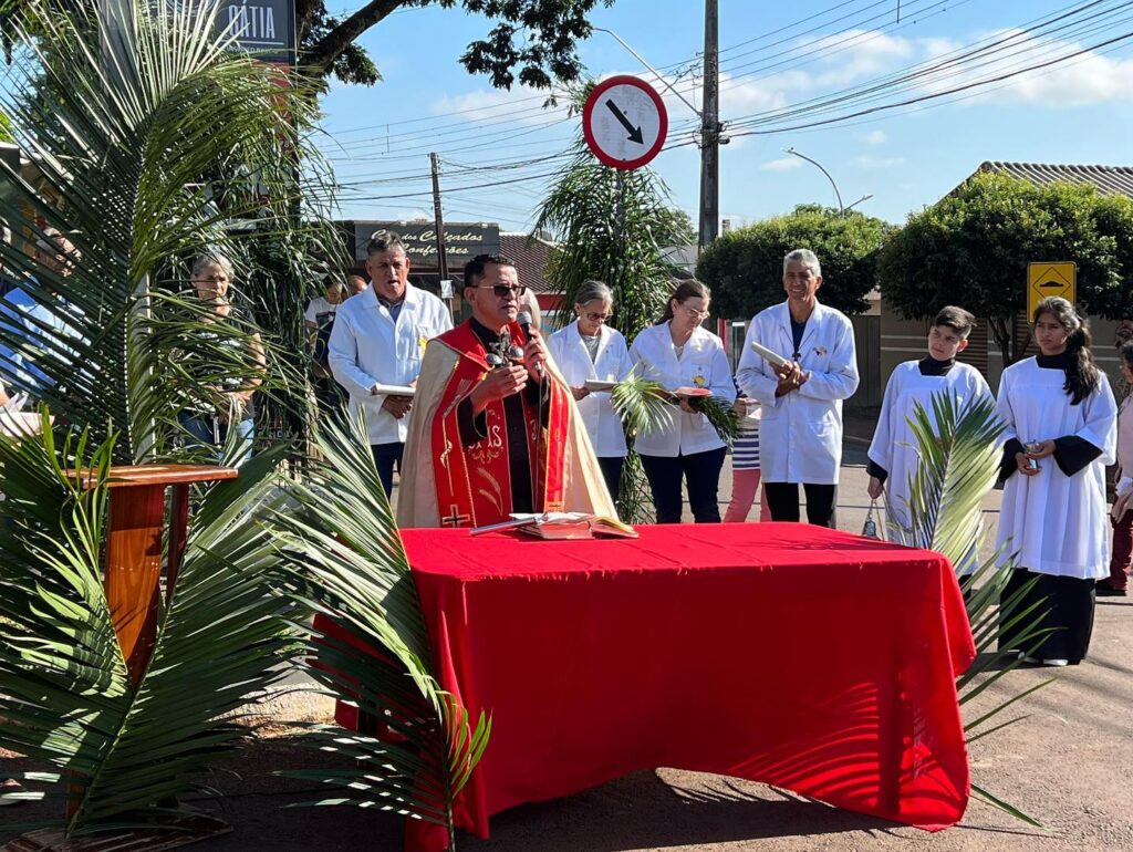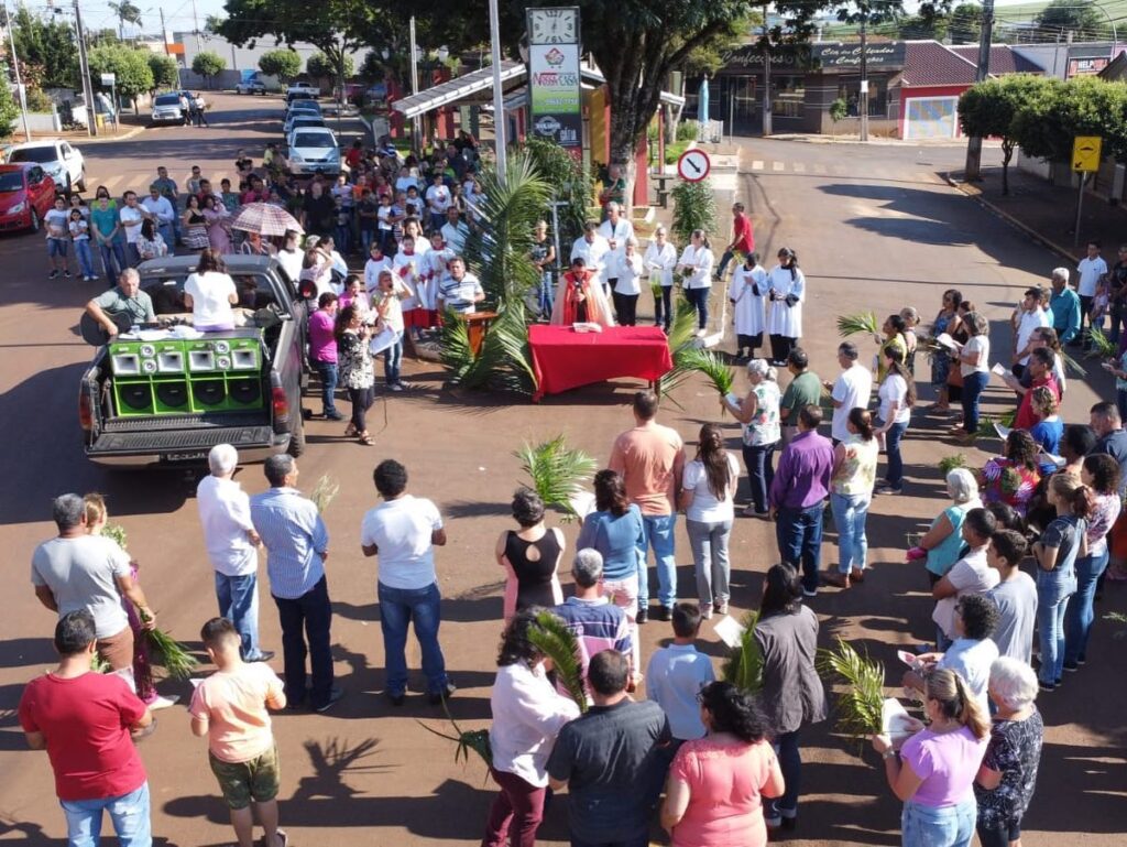 A Santa Missa com benção de Ramos teve início na Praça Central com procissão até a Igreja. A missa foi celebrada pelo pároco, Pe. Paulo Sérgio.