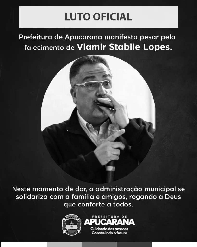 APUCARANA: Prefeitura decreta luto oficial de três dias pela morte de Vlamir Stabile Lopes 25 de novembro de 2025