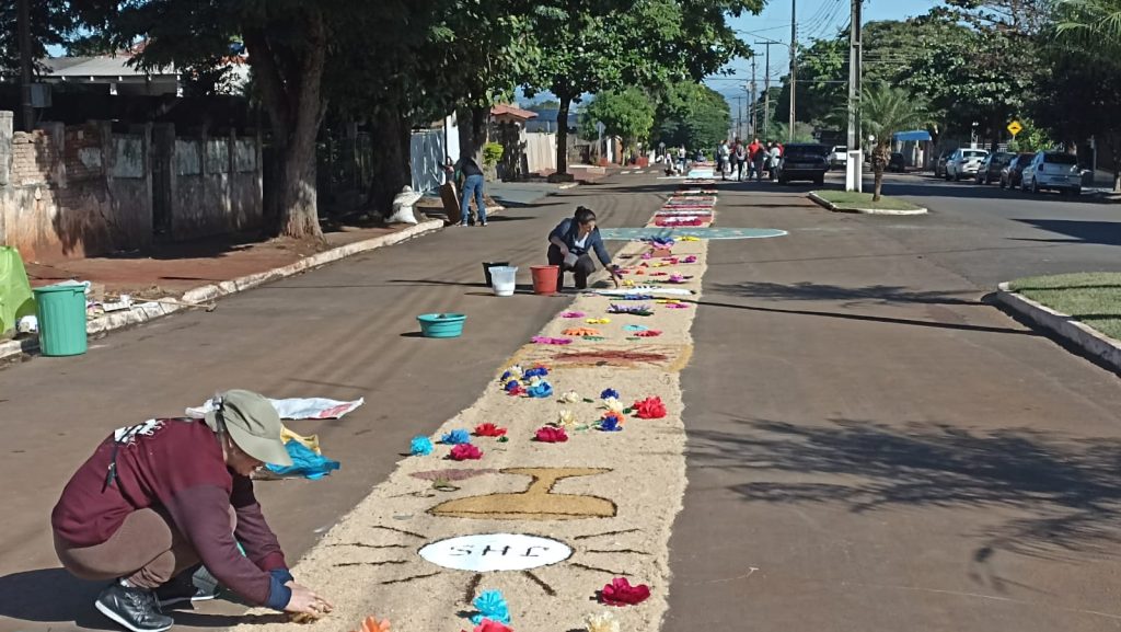 Tapetes de Corpus Christi colorem as ruas de Borrazópolis
