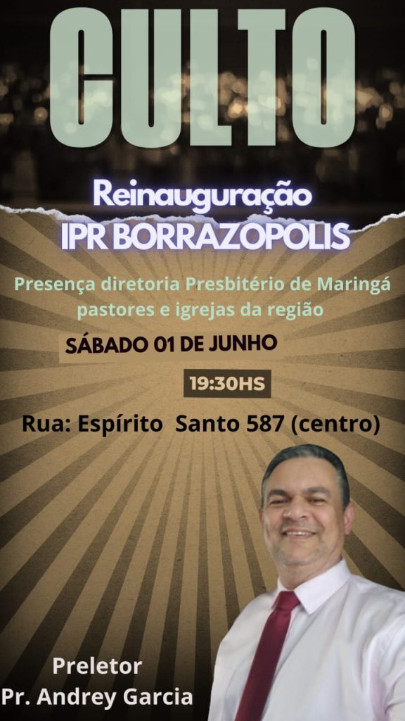 Convite para reinauguração da Igreja Presbiteriana Renovada de Borrazópolis