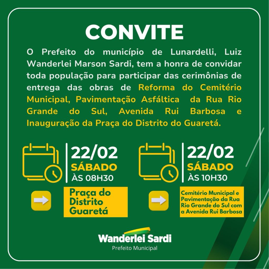 LUNARDELLI: Prefeito Wanderlei realiza inaugurações em Praça, pavimentação e reforma do cemitério 20 de fevereiro de 2025