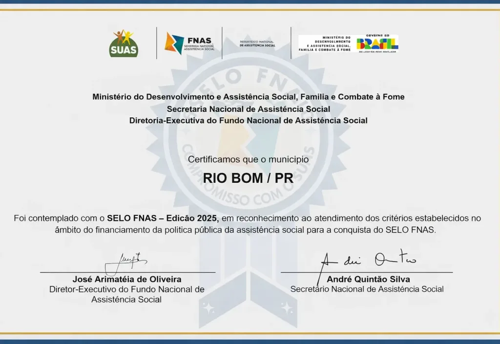 Rio Bom conquista Selo FNAS 2025 na assistência social