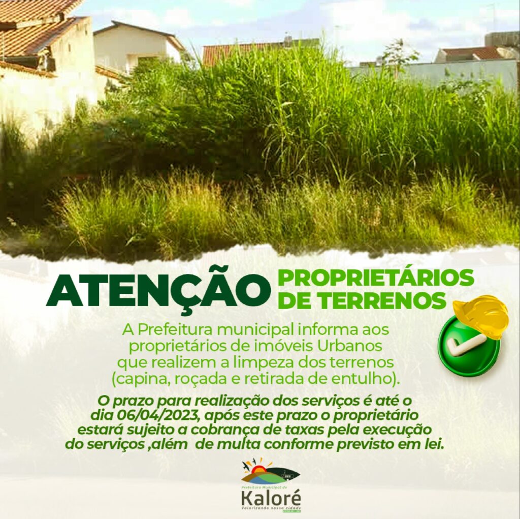 KALORÉ: Prefeitura divulga prazo para proprietários limparem seu terreno no município 31 de março de 2023